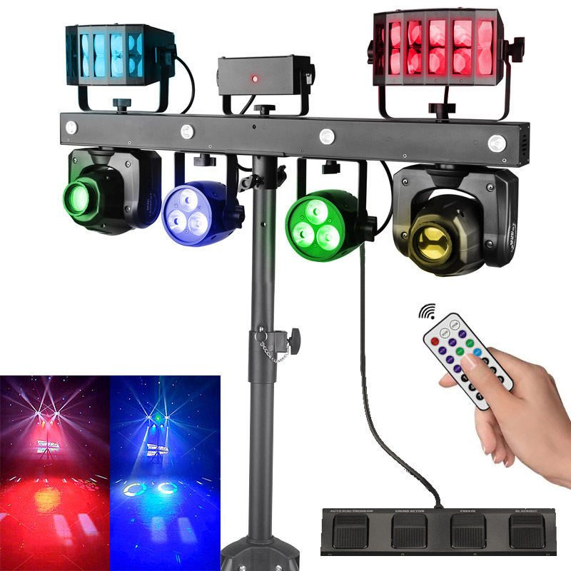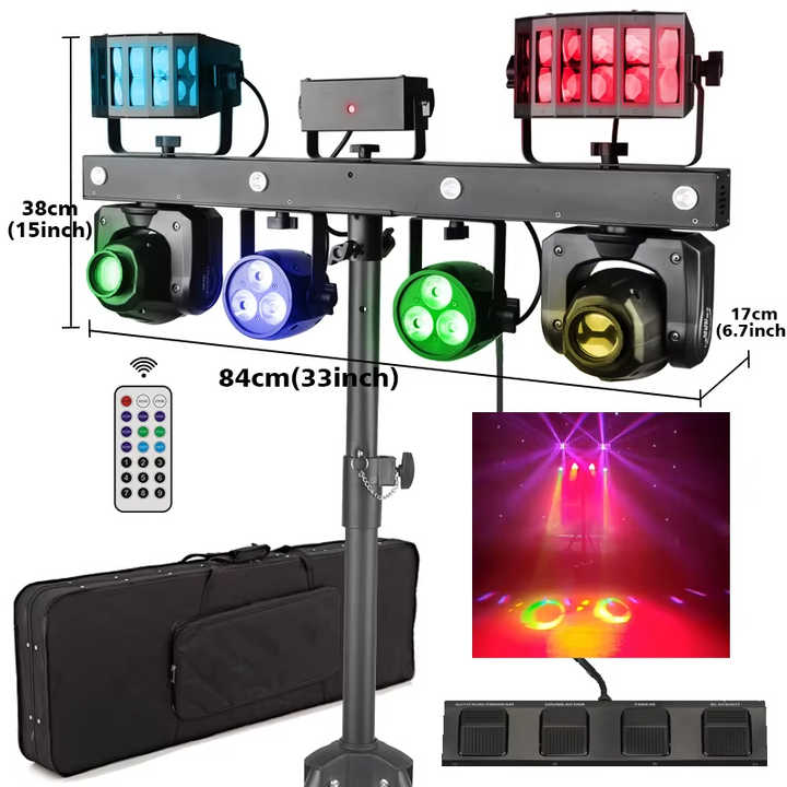Sistema di Illuminazione Professionale per DJ con Barra LED e Stativo, Luce da Palco con 12 LED RGBW da 1W, Testa Mobile 5 in 1 PAR Laser
