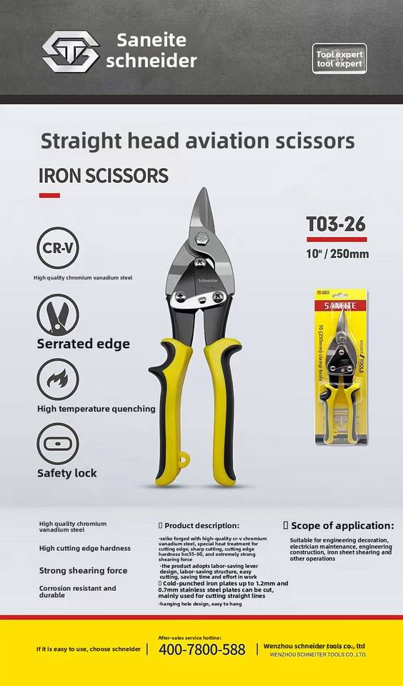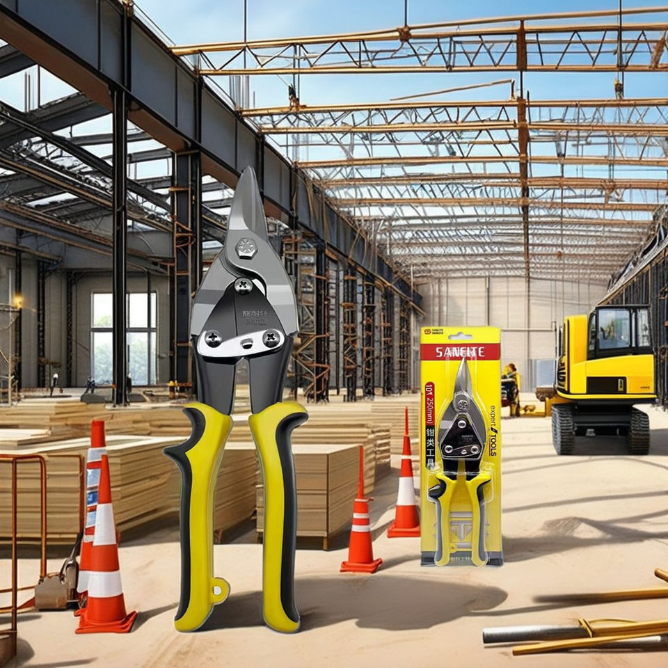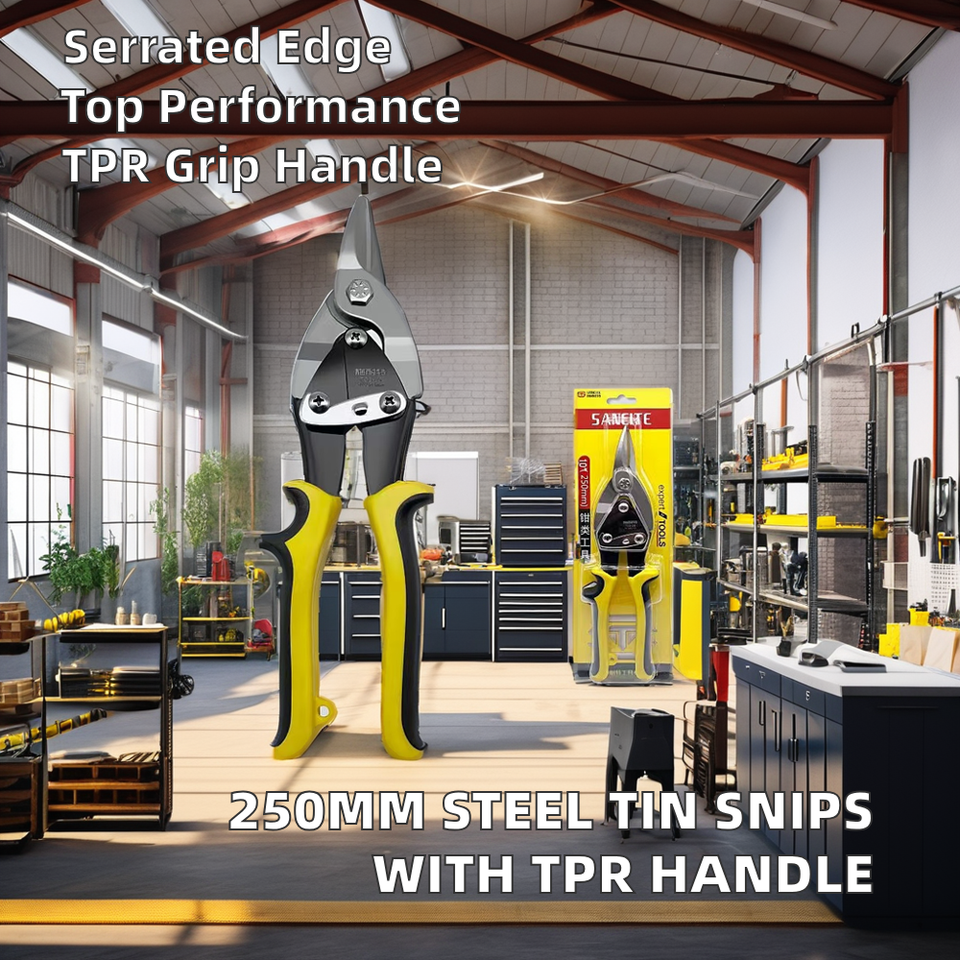 Left Handed DIY Grade Aviation Tin Snips 250mm TPR Handle Stainless Steel Snipe Cutter Serrated Straight Cut Sheet Scissor Shear