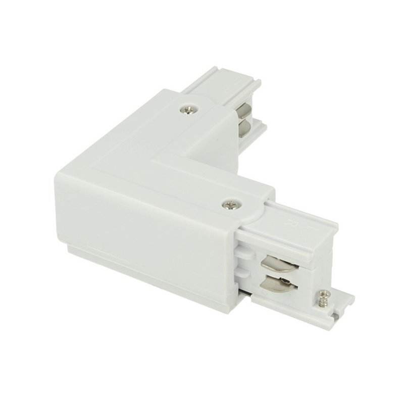 Connettore a L Sinistro Bianco per Sistema di Illuminazione Commerciale a Binario Trifase CB40101 CB40102 CB40103