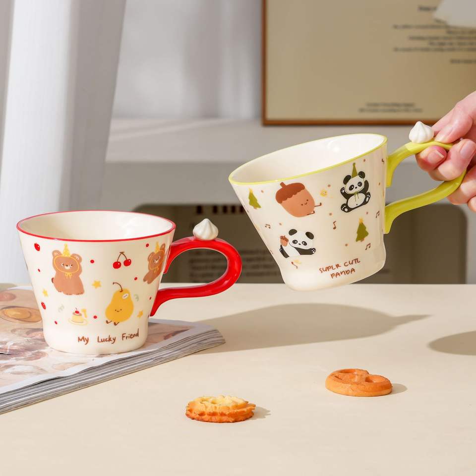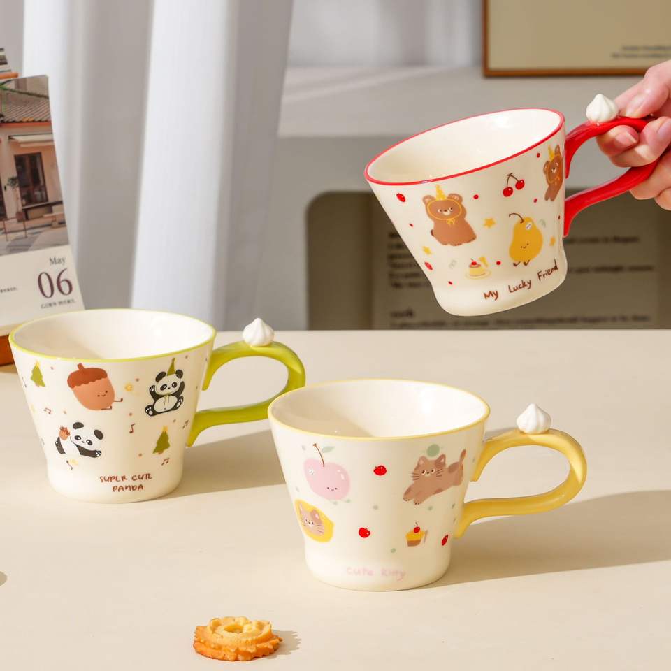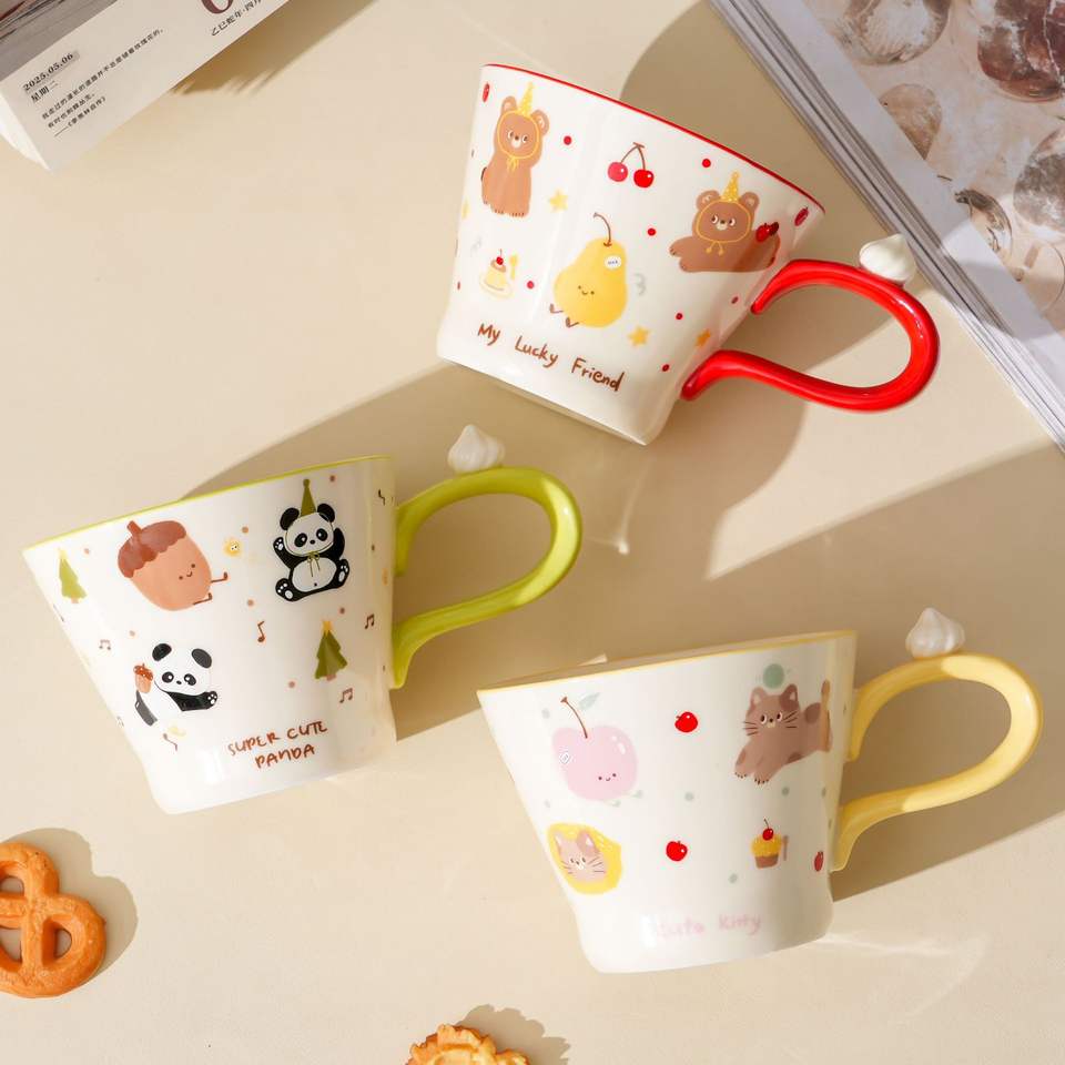 Lelyi Eco-Friendly Porcelain Ceramic Mug Cartoon Animal Graffiti Design for Office Girls Coffee Drinking Water Cups Product Name