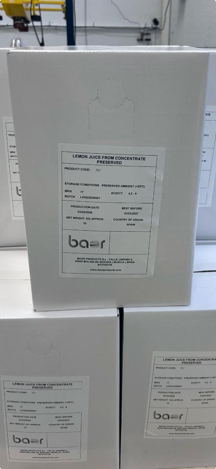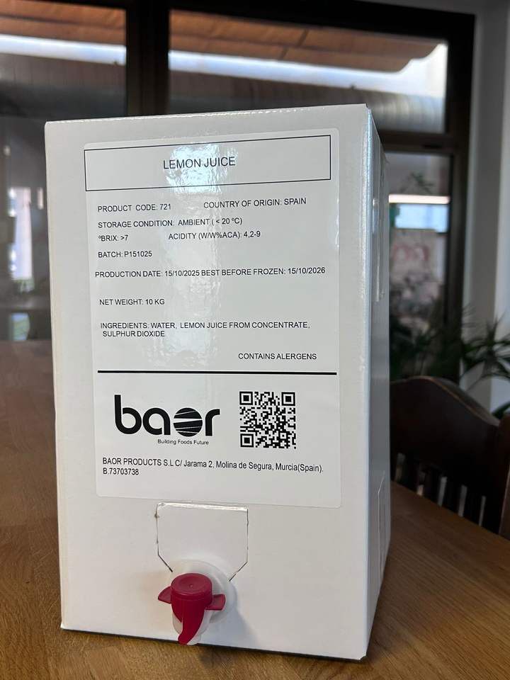 Succo di Limone Concentrato Baor Products 10 Litri Durata 12 Mesi