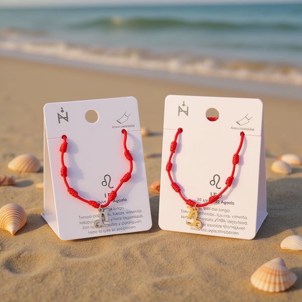 Cavigliera Leo Sette Stelle con Cordino Rosso in Acciaio Inossidabile, Gioiello Zodiacale Fatto a Mano per Donne, Cavigliere alla Moda