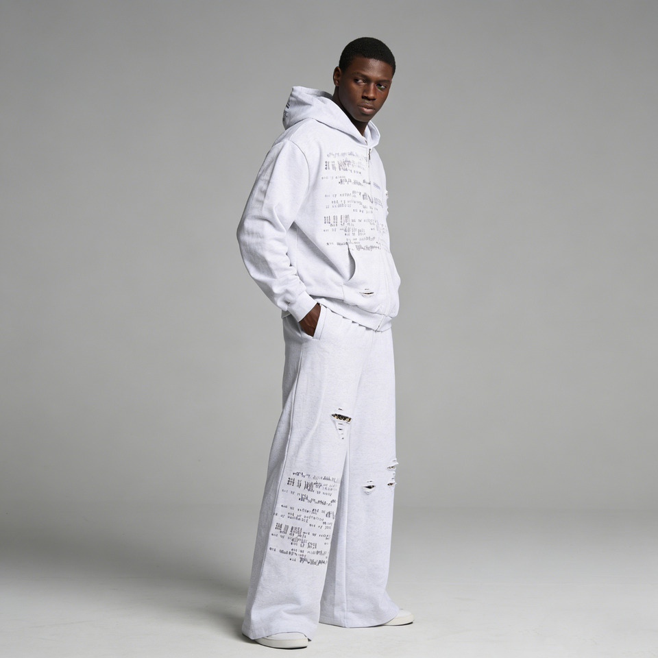 Tuta da Uomo Personalizzata con Logo Ricamato Leopardato, Effetto Vissuto, Traspirante, con Cerniera e Stampa DTG, Stile Streetwear