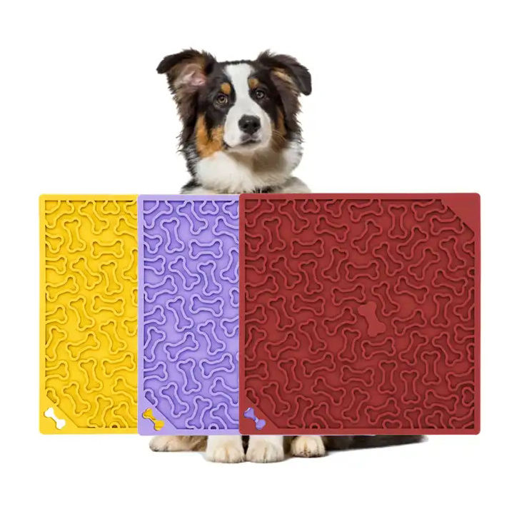 Tappetino da leccare per cani e gatti OEM, tappetino da leccare pieghevole in silicone solido per cani, tappetino da leccare moderno a forma di quadrati per l'alimentazione di animali domestici e gatti