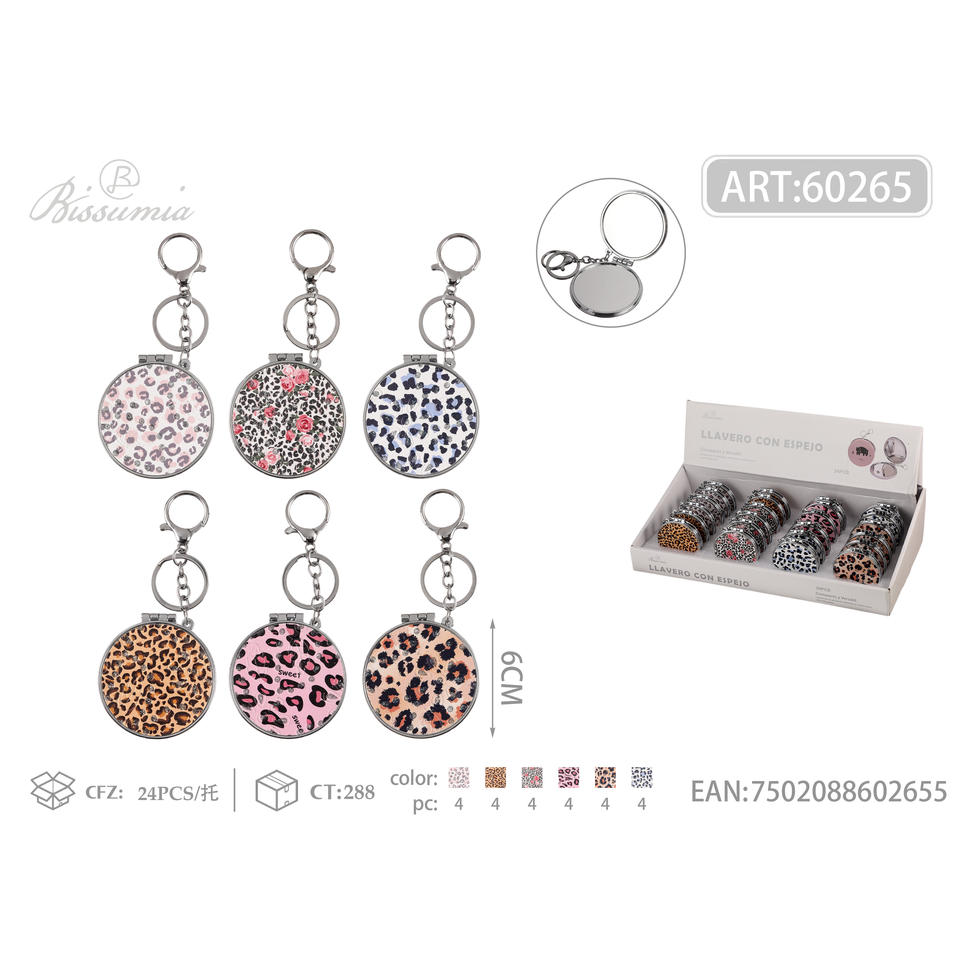 Leopardo stampa 6*1 portachiavi specchio trucco compatto pieghevole in pelle sintetica specchio cosmetico