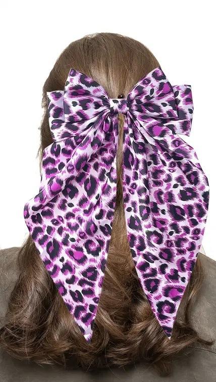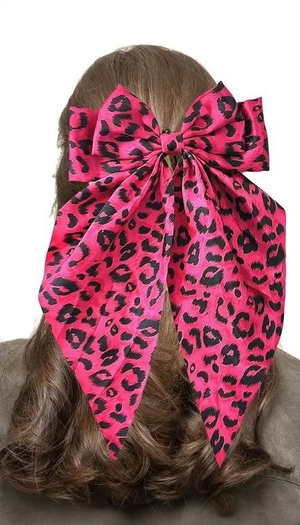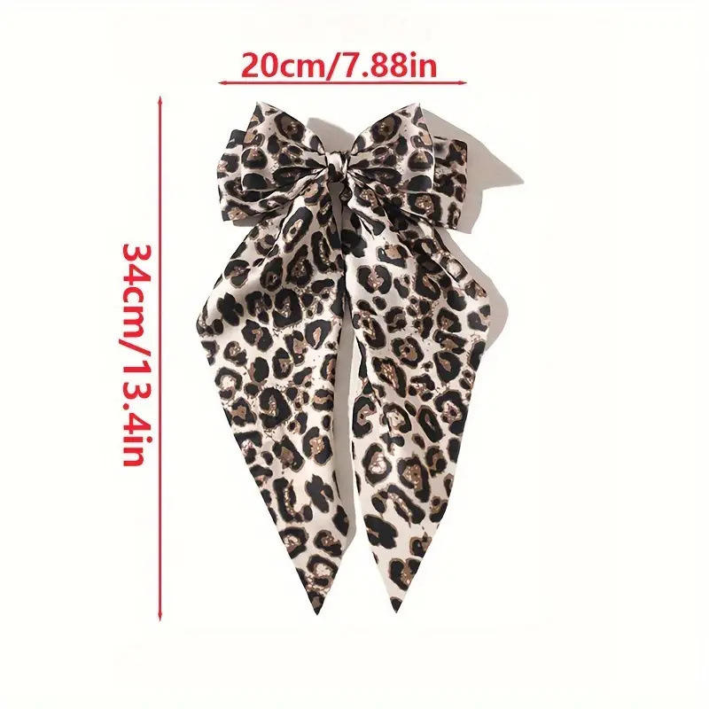 Fermagli per capelli con fiocco grande stampa leopardata, nastro francese a coda lunga, morbidi e setosi in raso, fermagli in metallo a forma di fiocco