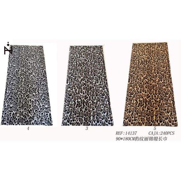 Sciarpa Lunga in Broccato con Stampa Leopardata 90x180Cm Accessorio di Moda per Donne