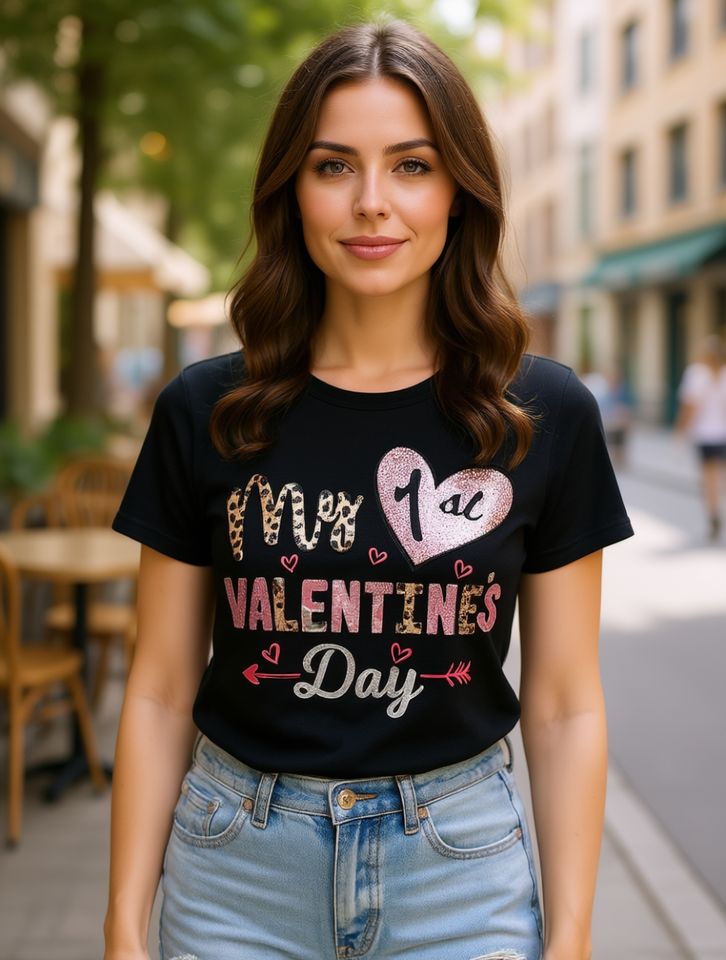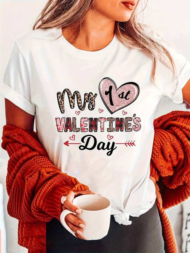 Leopard Print Glitter Heart T-Shirt Short Sleeve Crew Neck Casual Top Women's Summer Spring Clothing
