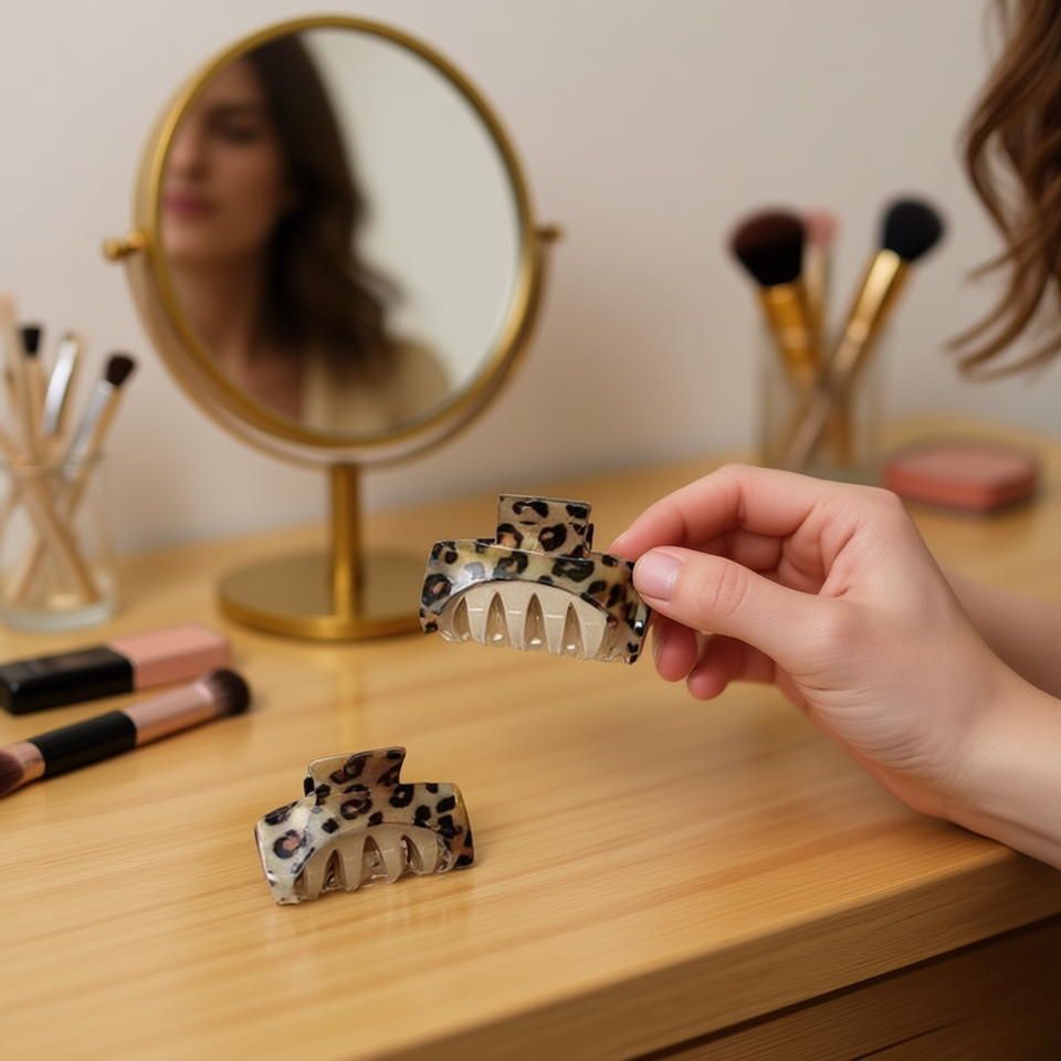 Fermaglio per capelli con stampa leopardata da 6 cm, design a patch, accessorio moda donna