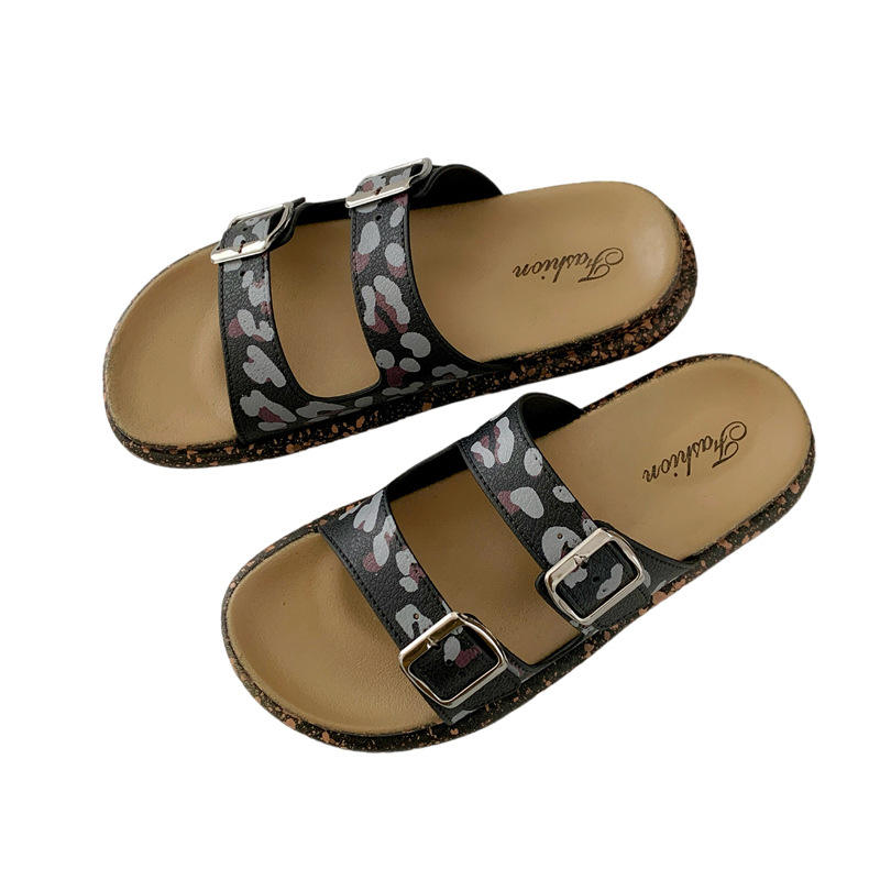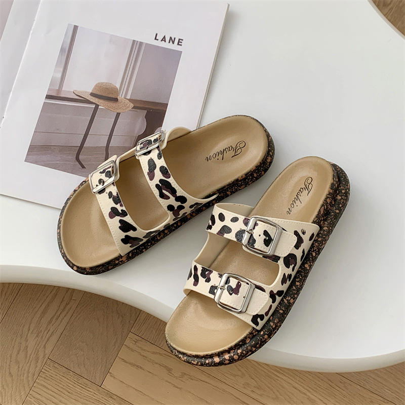 Sandali con suola spessa da donna con motivo a stampa leopardata e ciabatte estive transfrontaliere da donna per spiaggia all'aperto