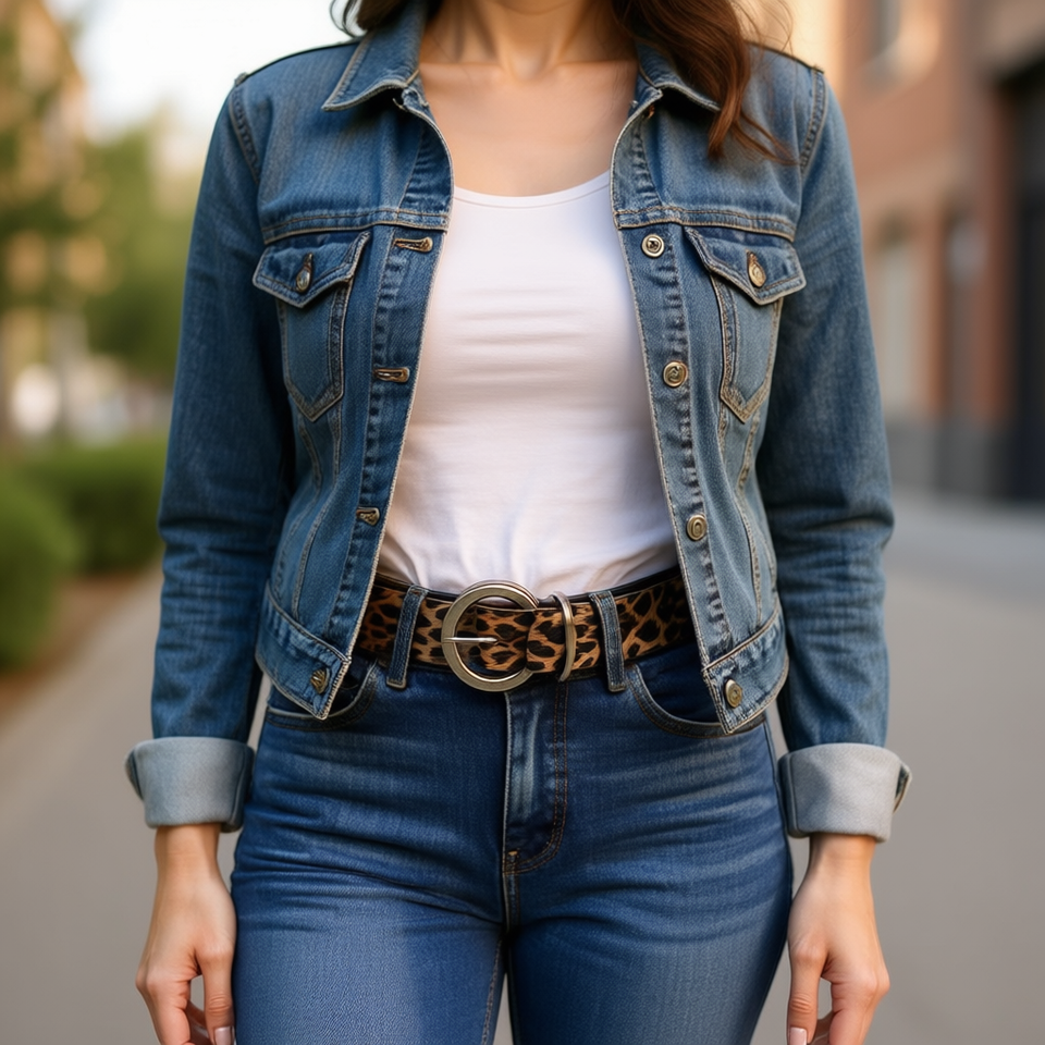 Cintura con Fibbia Rotonda Stampa Leopardata 4Cm Accessori Moda Donna
