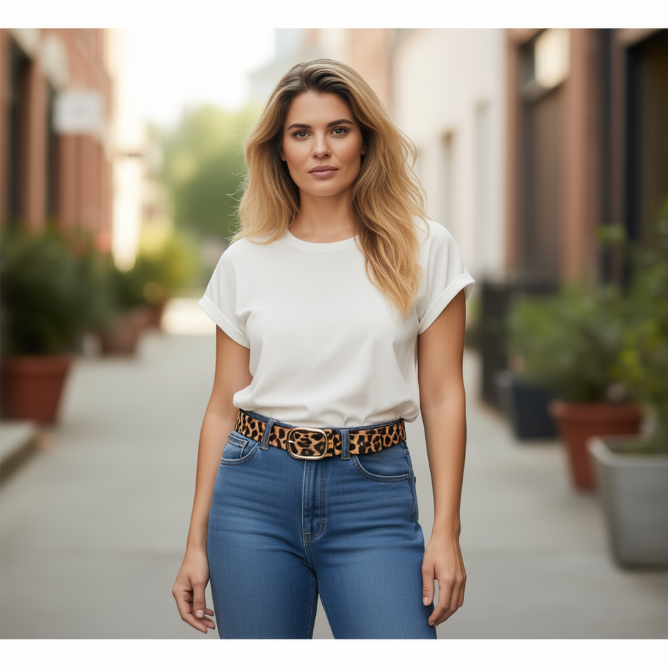 Leopard Print Waist Belt 2.5Cm Oval Buckle Fashion Tummy Belt Breathable Spandex Polyester Four Seasons China Model 71676