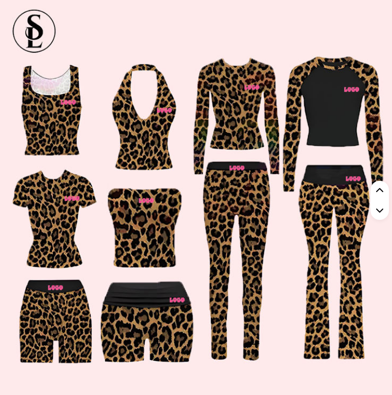 Completo Donna Due Pezzi con Stampa Leopardata, Logo Personalizzabile, Maglia a Maniche Lunghe con Leggings al Ginocchio, Abbigliamento Femminile con Stampa Ghepardo