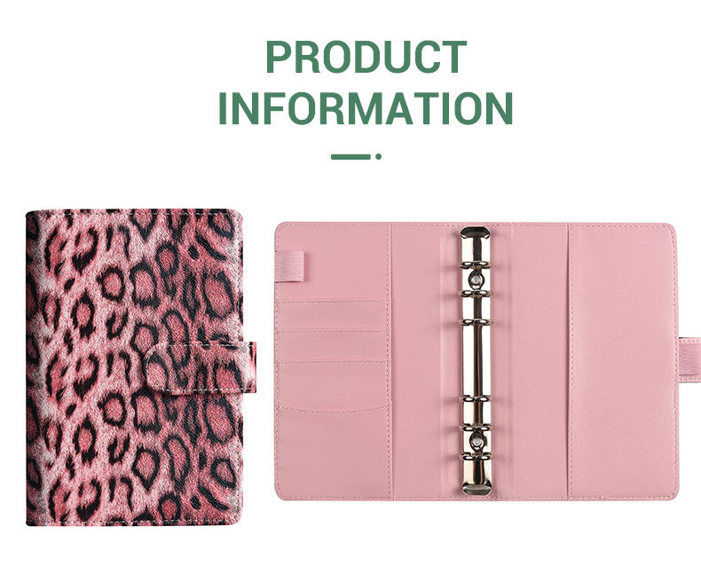 Agenda A6 in Pelle con Texture Leopardata, 6 Anelli, Organizer per Denaro, Planner con Fogli Staccabili e Buste Portacontanti
