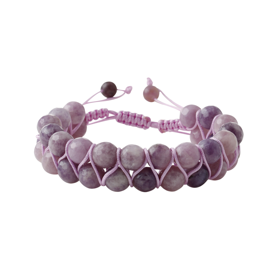 Bracciale in Pietra Naturale Lepidolite 8mm a Doppia Fila con Macramè