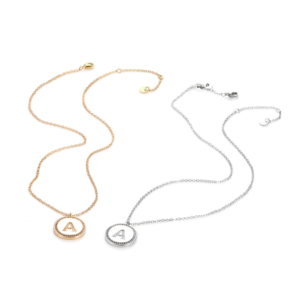 Collana con Ciondolo a Forma di Lettera A con Diamante, Catena da 2 Cm, Gioielli alla Moda in Acciaio Ref45586