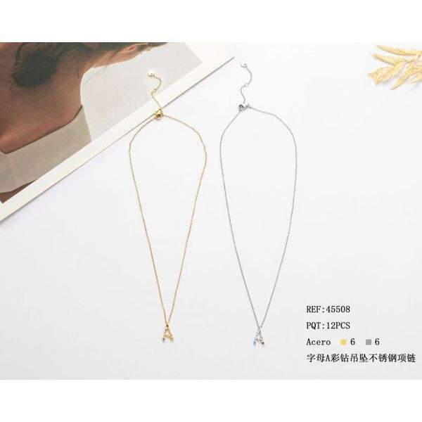 Collana con Ciondolo a Forma di Lettera A con Diamante, Catena in Acciaio Inossidabile, Gioielli alla Moda