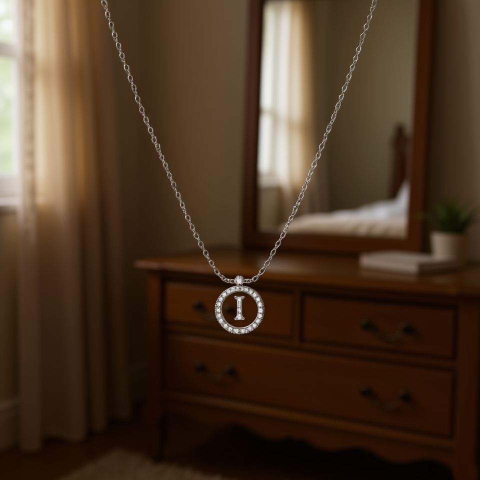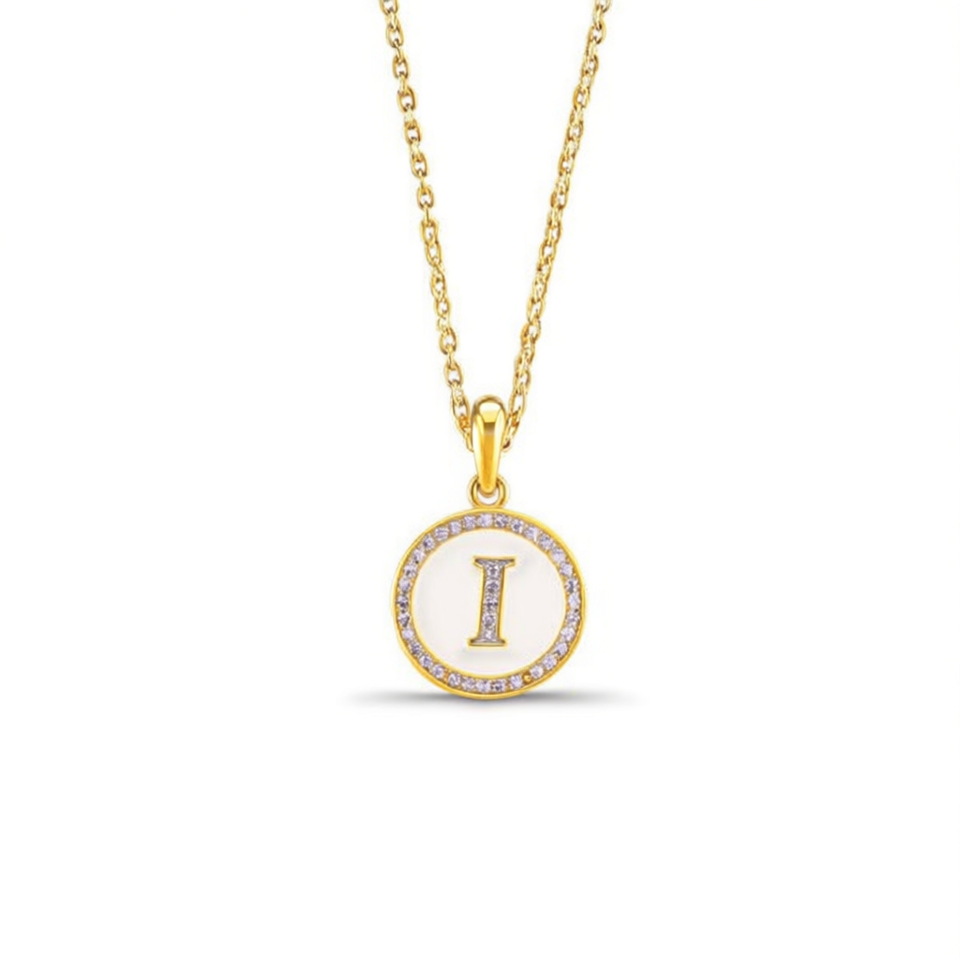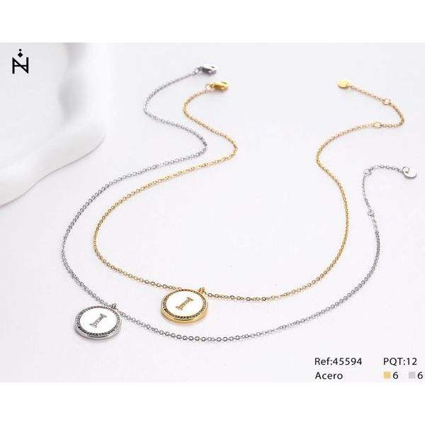Collana con Ciondolo a Forma di Lettera I con Diamante, Catena da 2 Cm in Acciaio, Ref45594