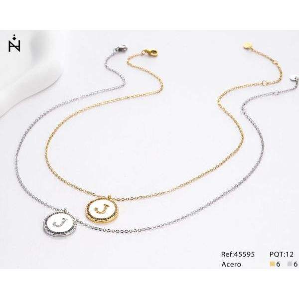 Collana con Ciondolo a Forma di Lettera J con Diamante, Catena da 2 Cm in Acciaio, Ref45595