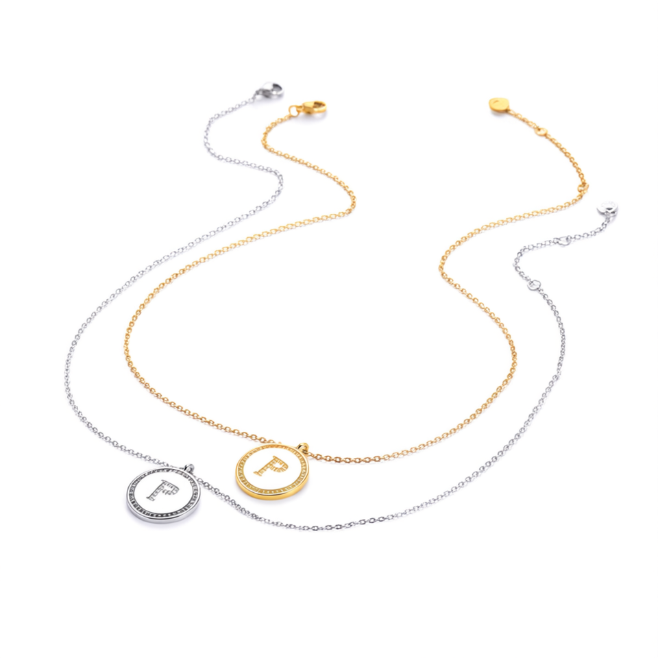 Letter P Diamond Pendant Necklace 2Cm Collar Chain Acero Gold Silver