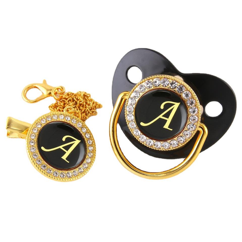 Lettera ciuccio scintillante strass bianco perle cristalli bambino Bling oro lusso ciuccio bambino lettera nome personalizzato