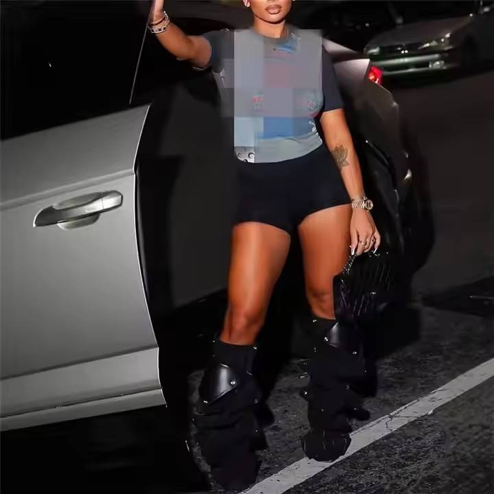Scritta stampata sport 2 pezzi Set da donna maglietta a maniche corte e pantaloncini abiti 2025 estivi Patchwork completi Fitness