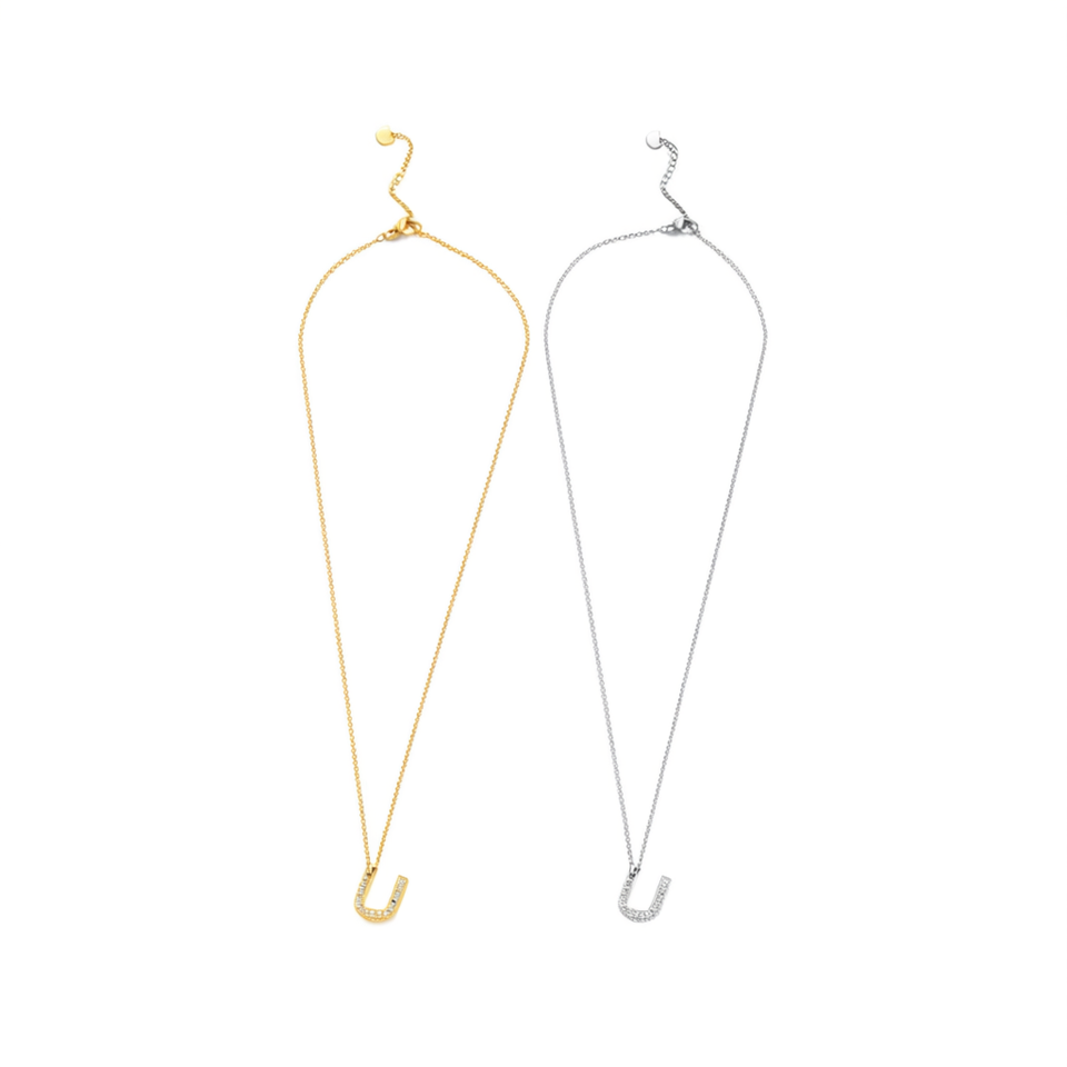 Collana con Ciondolo a Forma di Lettera U in Diamante, Catena in Acciaio Inossidabile 6mm 12pz Acero