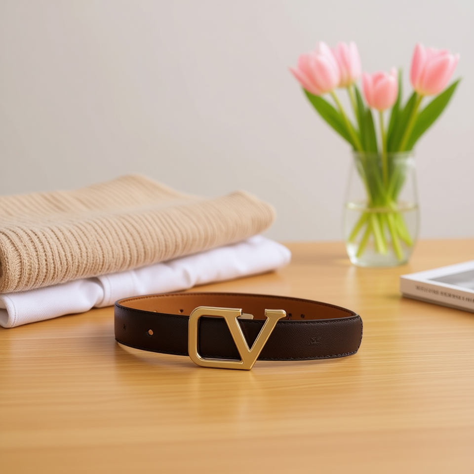 Cintura in Pelle PU con Fibbia a V Angelina 3Cm per Donna Accessorio Moda Casual