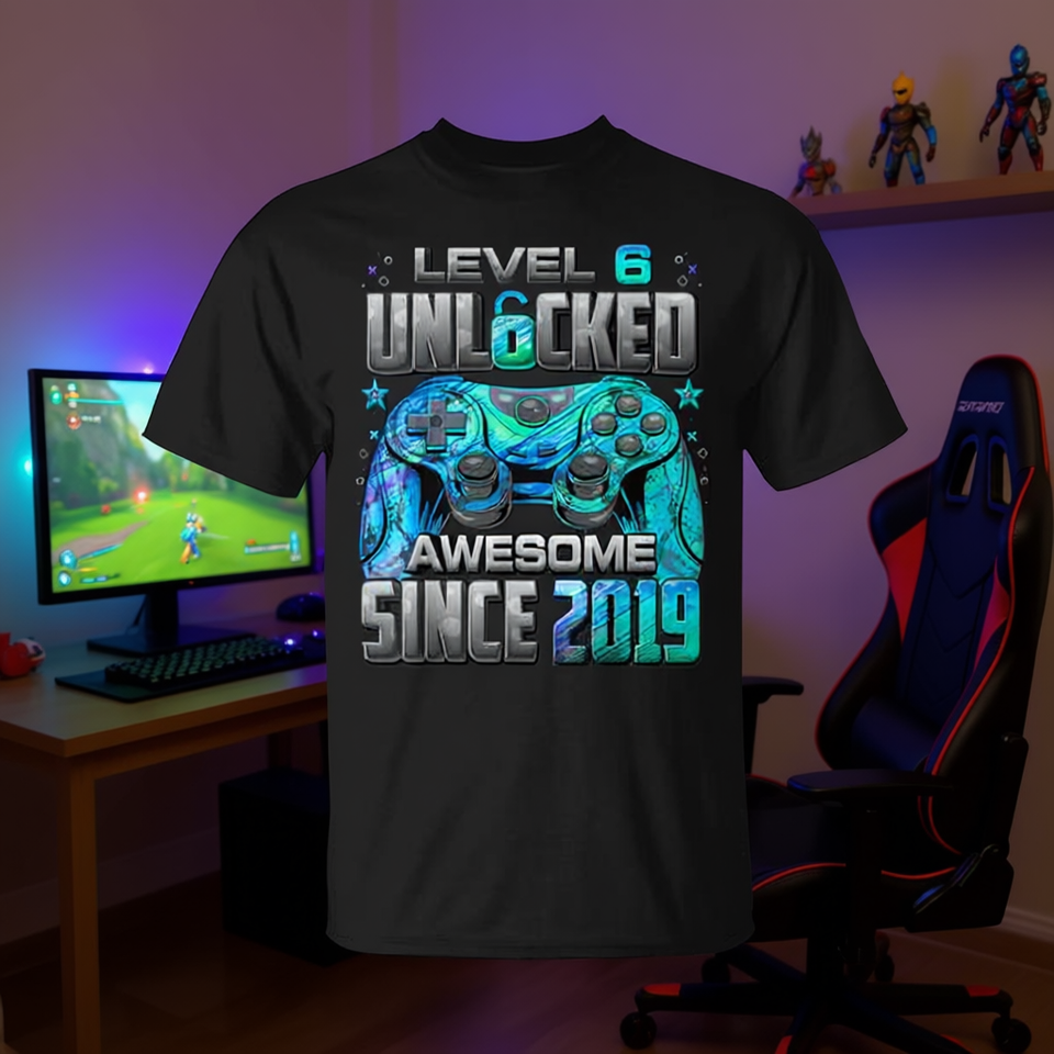 Livello 6 sbloccato. Fantastico da 2019. Maglietta da gaming, regalo per il 6° compleanno.