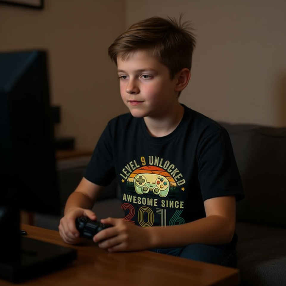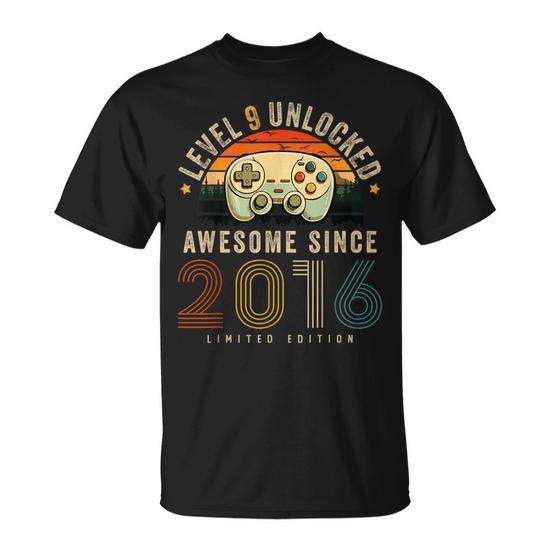 T-shirt Level 9 Unlocked Awesome Since 2016 per ragazzi, manica corta, girocollo, edizione limitata