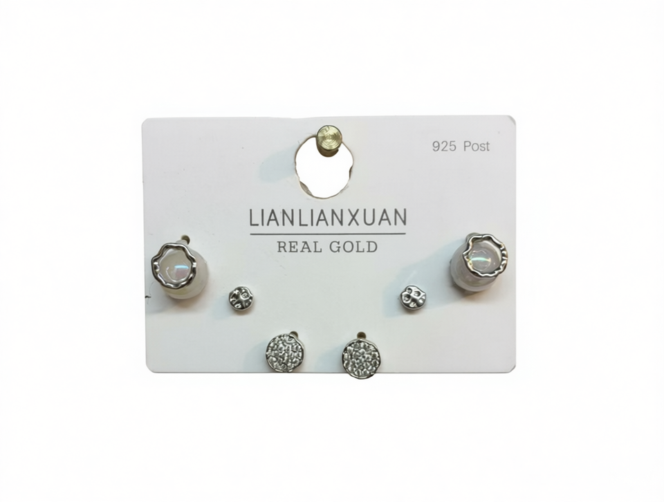 Lianlianxuan Stud Earrings Silver Pearl Flower Bezel Setting Women's Fashion Jewelry 925 Post Real Gold