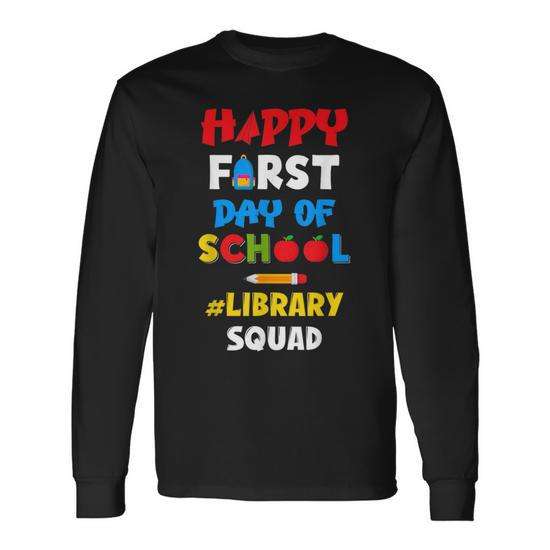 Library Squad Happy First Day Of School T-shirt a maniche lunghe per il personale dell'equipaggio degli insegnanti