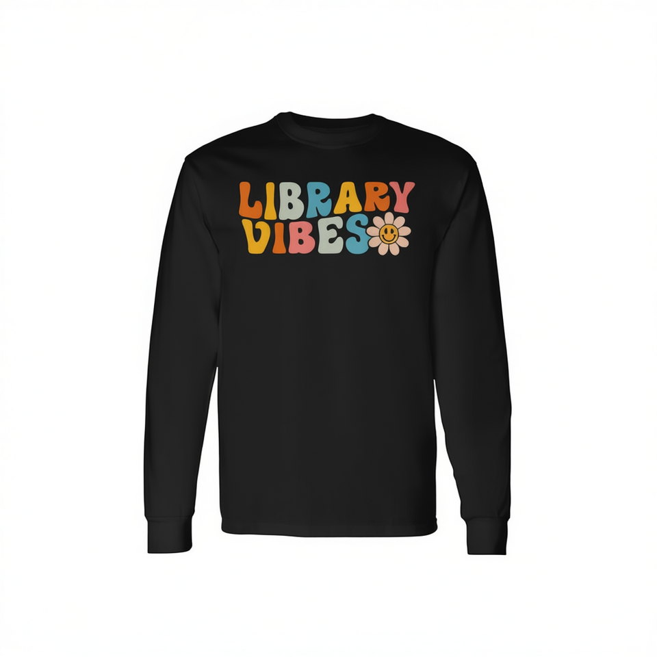 T-shirt a maniche lunghe Library Vibes per bibliotecario scolastico, primo giorno di scuola