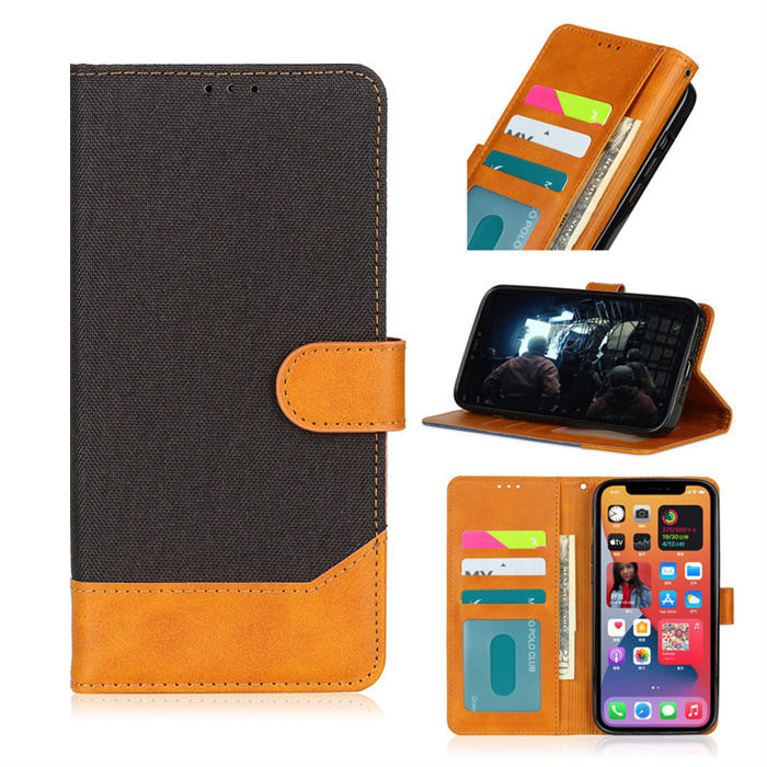 Nome dell'articolo:Portafoglio in Pelle con Motivo in Tessuto Denim Porta Carte Custodia per Cellulare