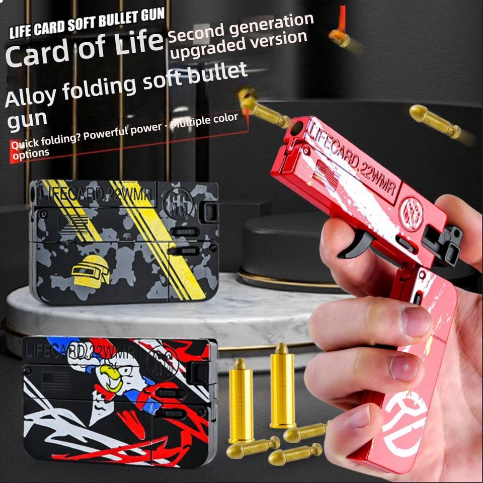 Life Card Pistola giocattolo pieghevole in metallo con proiettili morbidi, modello Trendy per ragazzi, colori assortiti