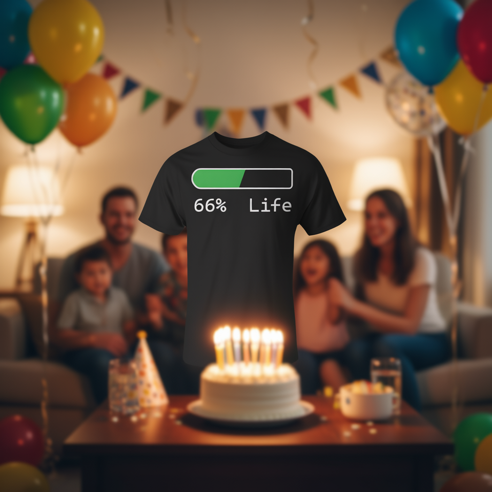 T-shirt con percentuale di età, 66 anni, regalo di compleanno per uomini, donne, abbigliamento unisex per adulti