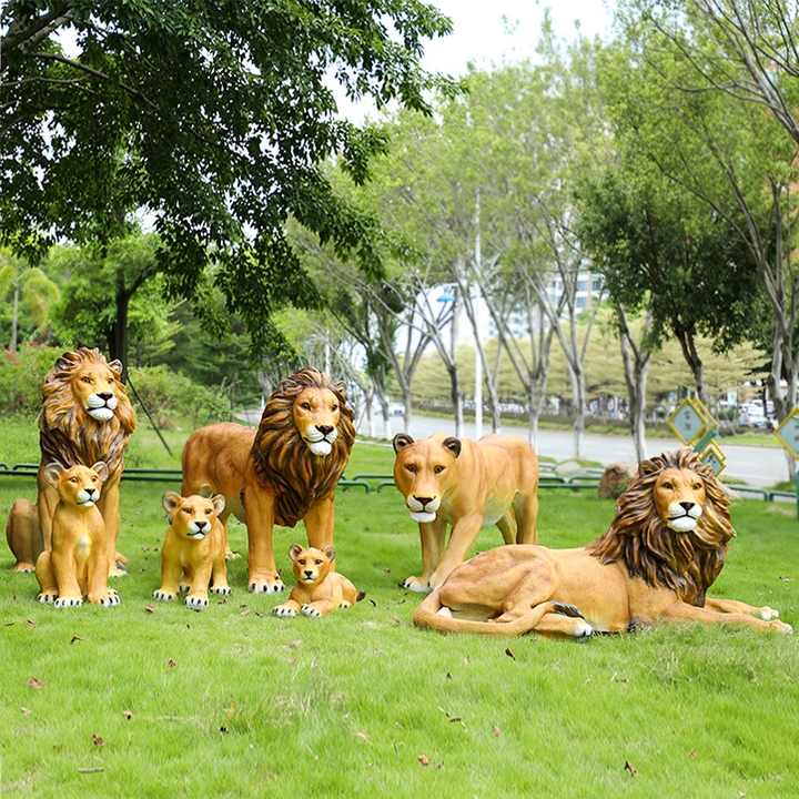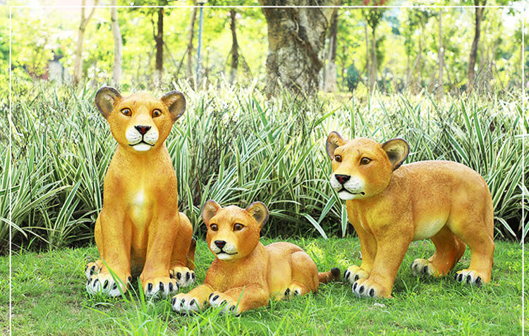 Life Size Artifical Fiberglass Resin lion and Cub Sculpture for Garden