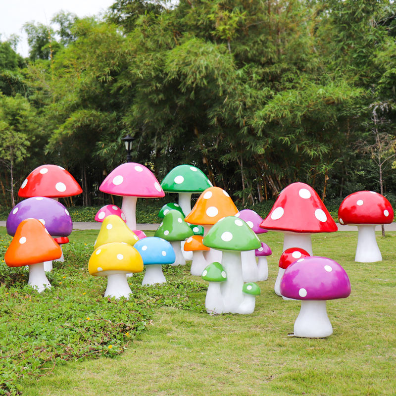 A grandezza naturale realistico fungo rosso statue grande giardino esterno decorazione in fibra di vetro colorato resina artigianato fungo decorativo
