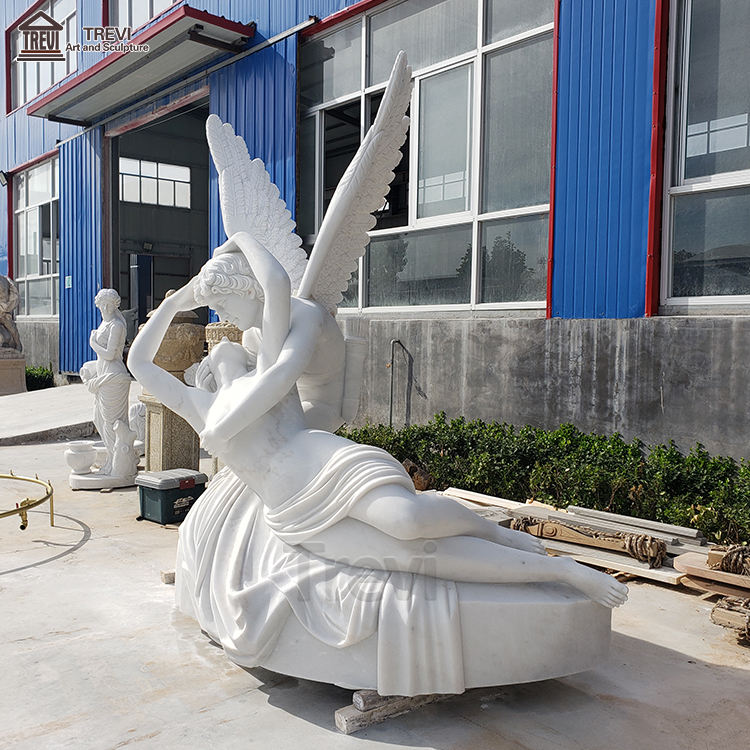 Scultura a grandezza naturale marmo psichico rianimato dalla statua di marmo di angelo bacio di cupido