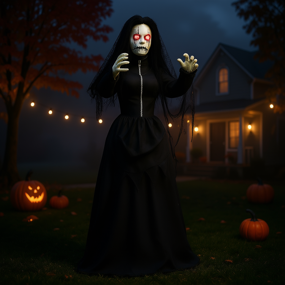 Decorazione Gonfiabile da Giardino per Halloween a Grandezza Naturale: Sposa Zombie Animatronica con Suono e Occhi Luminosi Attivati dal Movimento