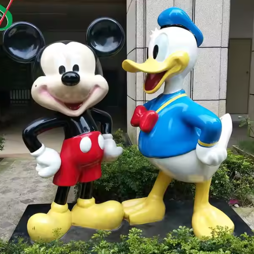 Sculture Artigianali a Grandezza Naturale di Topolino e Minnie in Fibra di Vetro, Scultura Moderna in Stile Cartone Animato di Topolino in Resina Trasparente
