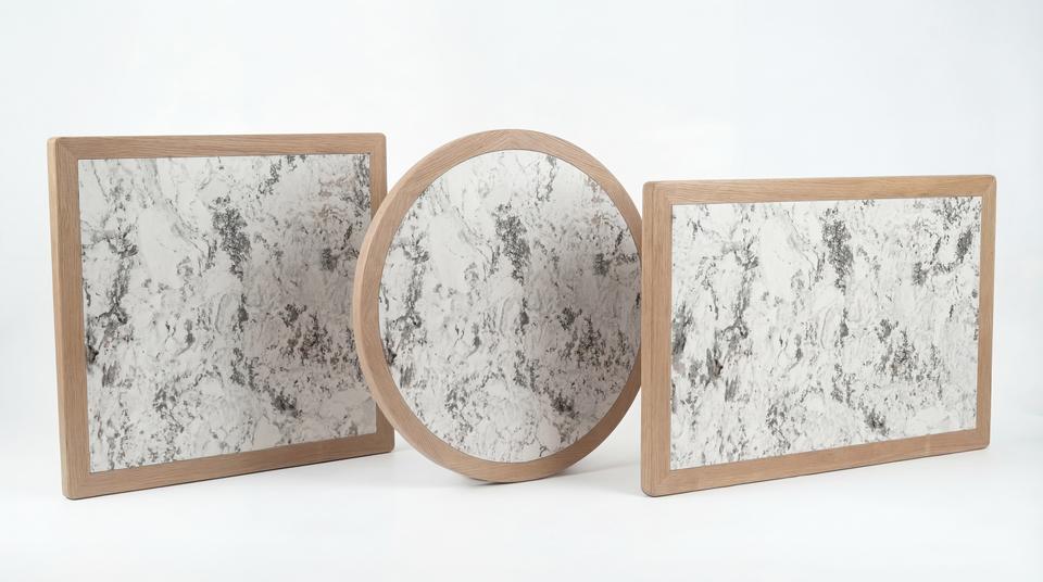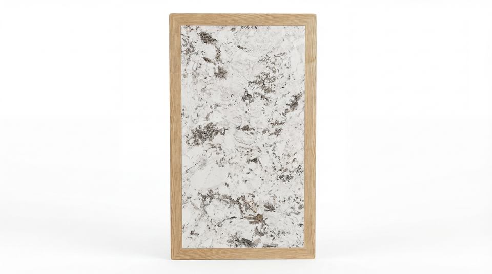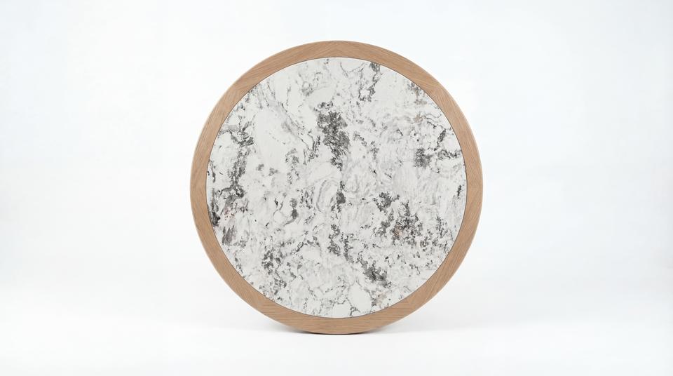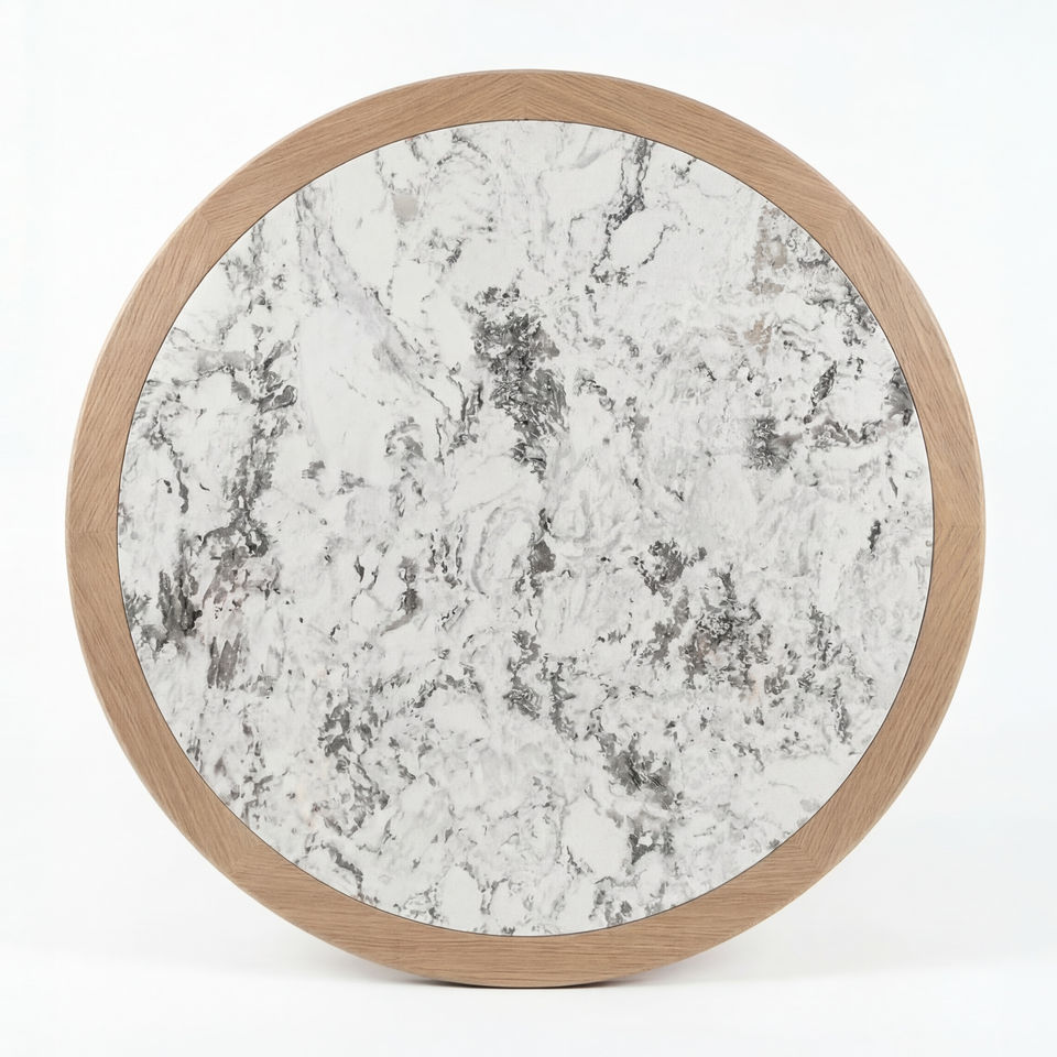 Piano per Tavolo da Pranzo in Legno di Frassino Bianco su Misura con Intarsio in Ceramica, Design Contemporaneo
