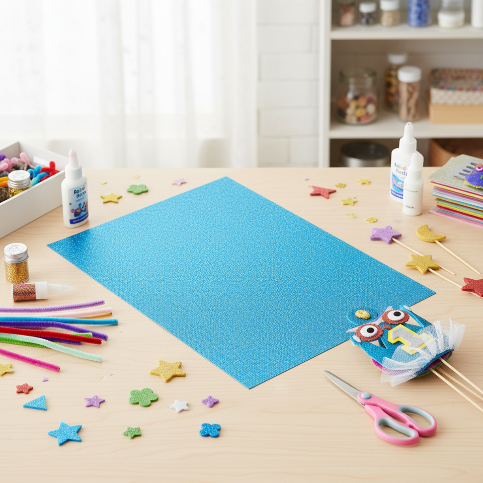 Carta Glitterata Non Adesiva Peiyong Azzurra 2MM Modello 51702 per Artigianato e Decorazioni