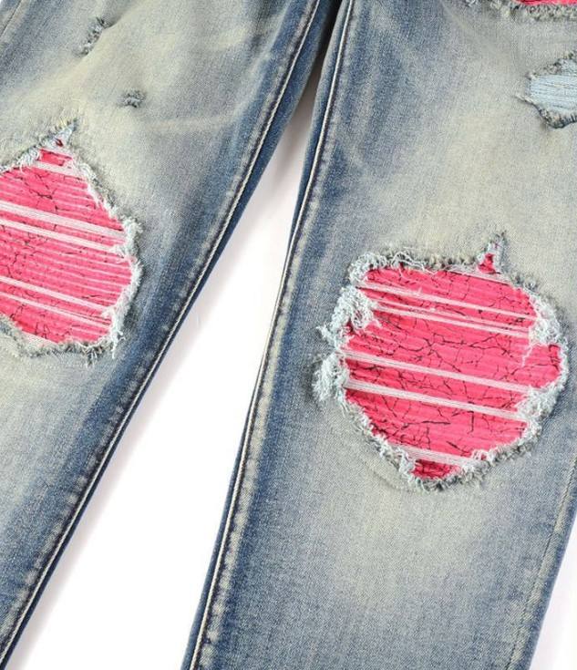 Jeans Elasticizzati da Uomo di Alta Qualità, Blu Chiaro, con Effetto Spell Color, Strappi e Patch, Modello Skinny e Dritto