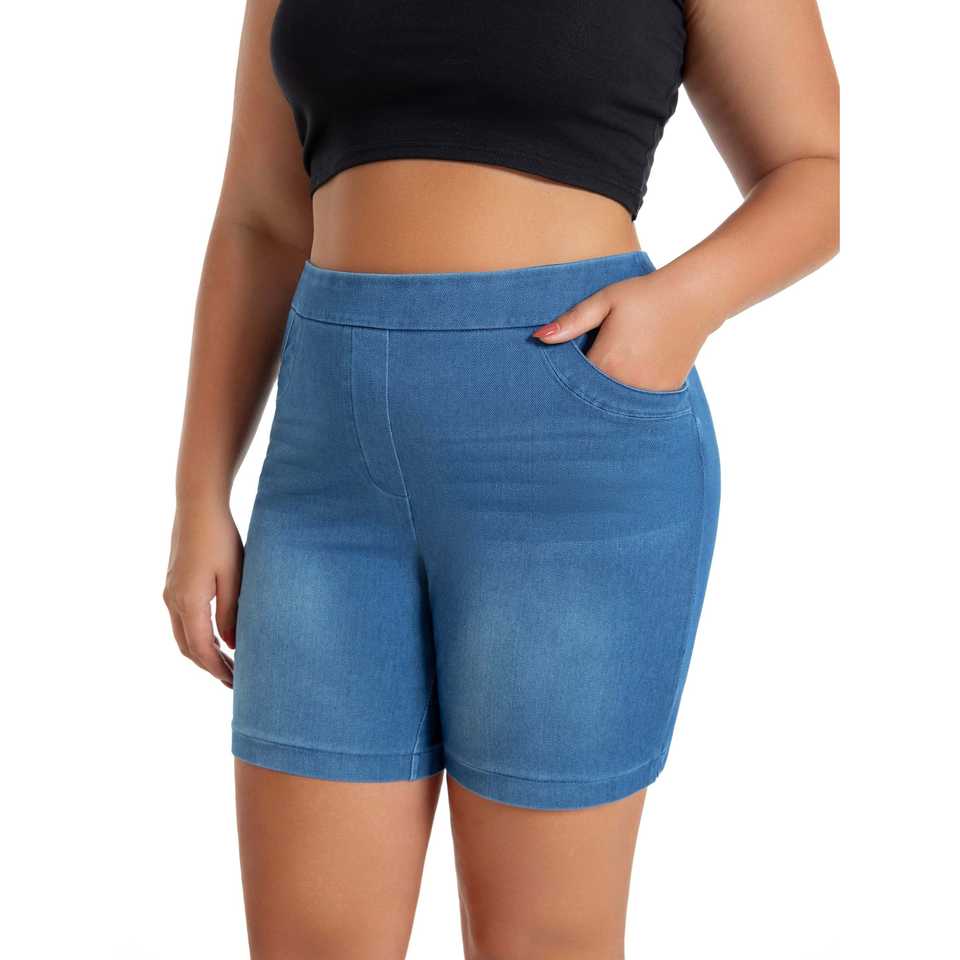 Shorts in denim elasticizzato da donna a vita alta, blu chiaro, comodi, snellenti, vestibilità casual e rilassata, con tasche, traspiranti, estivi