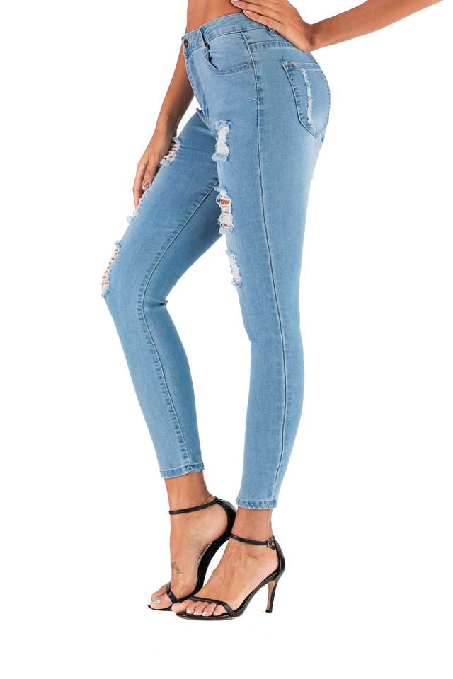 Light Blue Jeans for Women Wholesale Pant Ripped Slim-Fit Jeans Women's Stretch Low Waist Pencil Pants Ripped Jeans Trousers