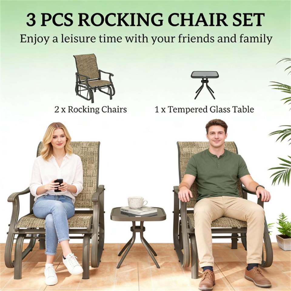 Set da Giardino Marrone Chiaro a 3 Pezzi: Sedia da Taverna e Arredamento da Esterno