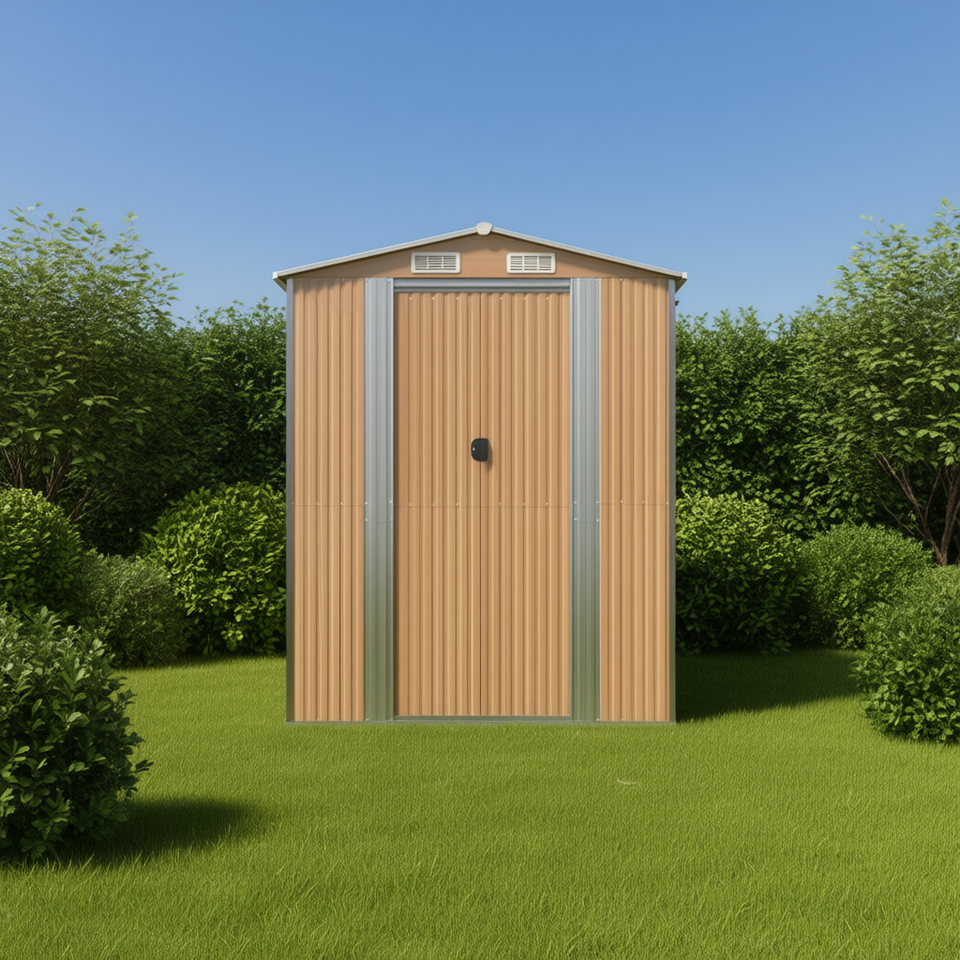Casetta da giardino in acciaio zincato 75.6x205.9x87.8 pollici marrone chiaro per deposito attrezzi