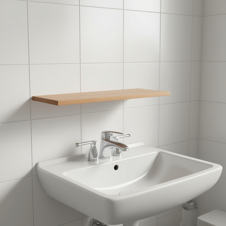 Solid Wood Bathroom Countertop 55.1x23.6x0.8-1.6 In Treated Rectangular Minimalist Wall Mounted Single Tier