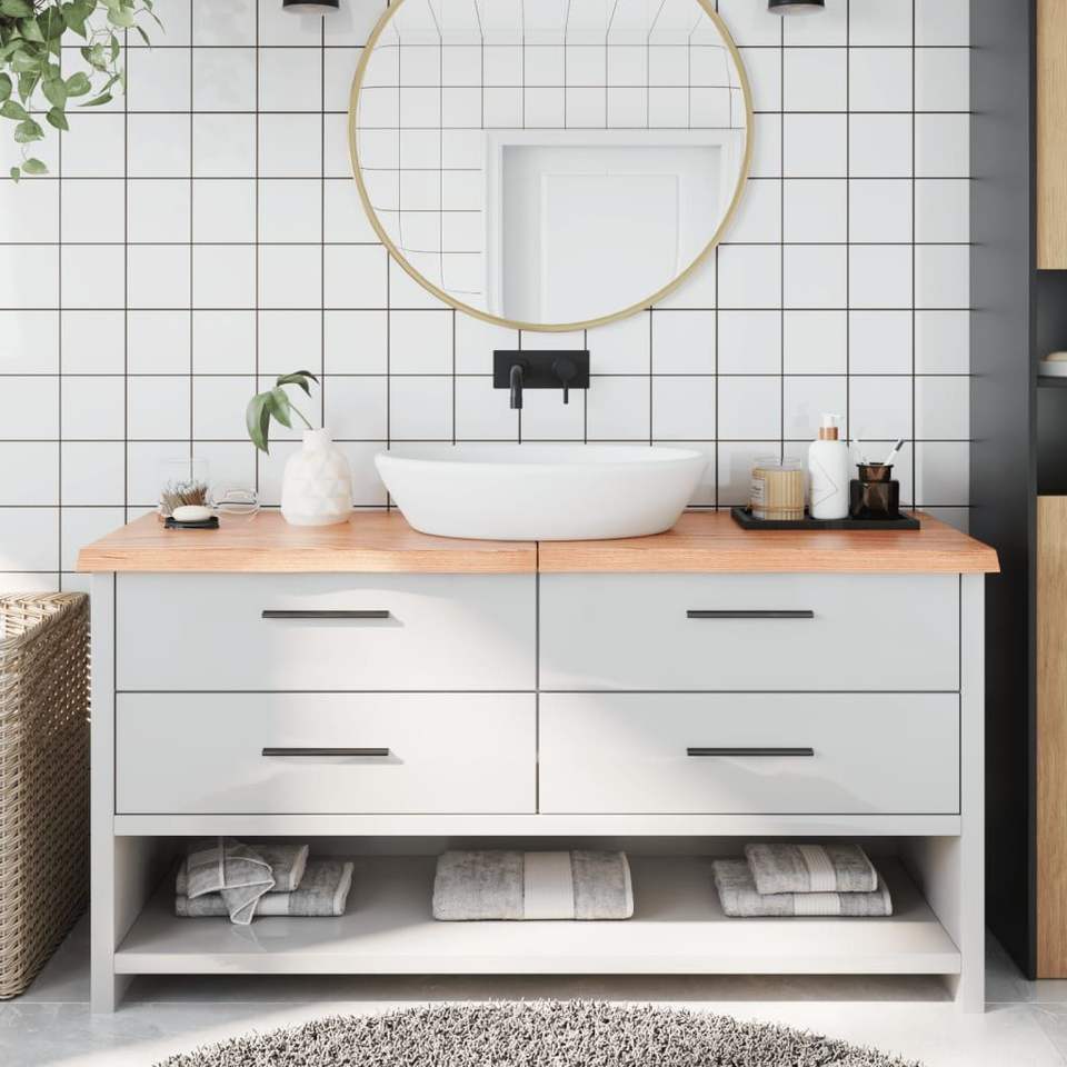 Light Brown Solid Wood Bathroom Vanity 63"x19.7"x(0.8"-1.6") Countertop with Light Treatment